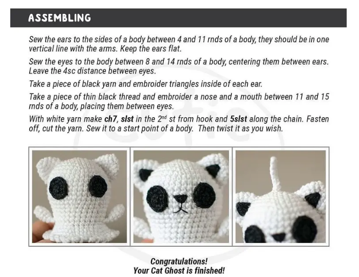 I want to give you some informations about this amigurumi free pattern ; Crochet Little Ghost Cat.