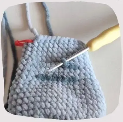 Fold the top opening flat and 3 sc through both sides.