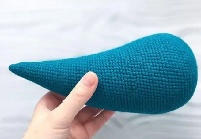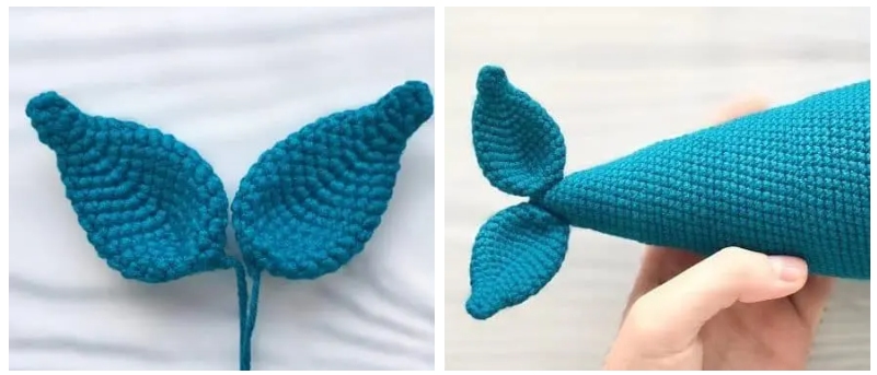 5) Sew the fins to the body between R 34 and R 35, stepping back from the belly 2 sc.